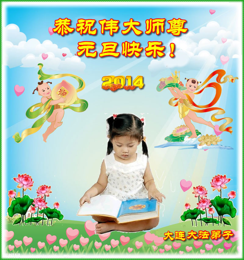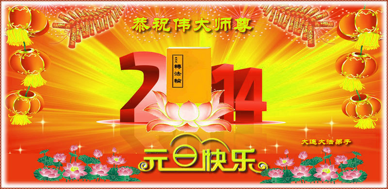 回首2013年,弟子在修炼的路上磕磕绊绊的走了过来,亲身经历了师尊一路上对弟子的呵护,在另外空间师尊挡住了邪恶射向弟子们的致命子弹。弟子用尽人类的语言也无法表达弟子对师尊的感恩,唯有精進,做好三件事,以报师恩!大连大法弟子叩拜! 辽宁省大连大法弟子恭祝伟大师尊元旦快乐!