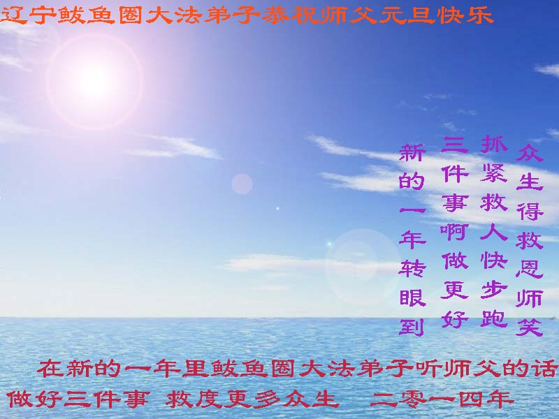 【明慧网二零一三年十二月三十日】 辽宁鲅鱼圈大法弟子恭祝师父元旦快乐!