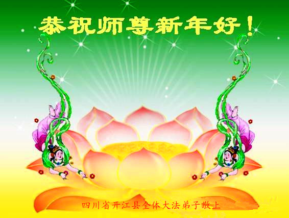 我代表我们延庆全体大法弟子向伟大的师尊问好!我们延庆全体大法弟子叩拜伟大的恩师!谢谢慈悲苦度的恩师! 辽宁省抚顺大法弟子恭祝师尊新年好!