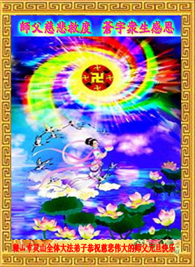 弟子一定谨记师尊教诲,多学法,修好自己,圆容整体,让师尊多一份欣慰,少一份操劳。谢谢师尊! 江苏省连云港市一大法弟子恭祝师尊新年快乐!