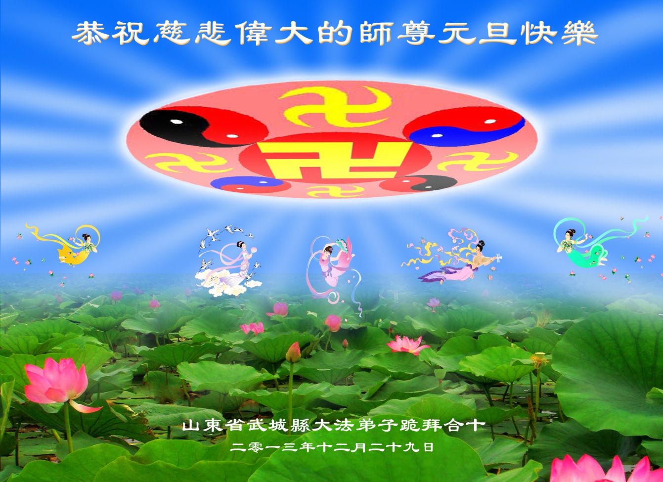 【明慧网二零一三年十二月三十日】 山东省德州市武城县大法弟子恭祝慈悲伟大的师尊元旦快乐!