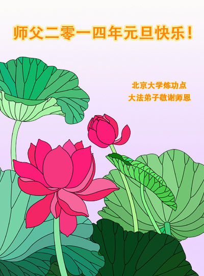 在新的一年里,弟子一定更加努力做好三件事,不辜负师父的希望,做一名合格的大法弟子! 北京大学炼功点大法弟子敬谢师恩!恭祝师父二零一四年元旦快乐!