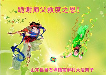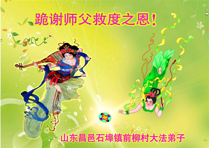 【明慧网二零一三年十二月三十日】 山东省潍坊市昌邑市石埠镇前柳村大法弟子恭祝师尊元旦快乐!