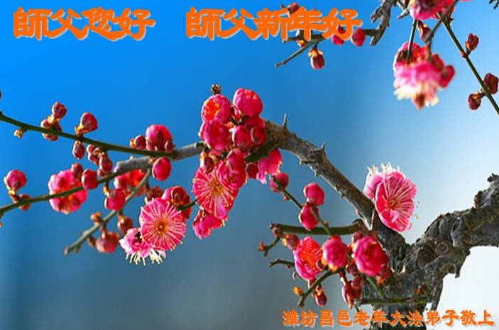 梅开遍九州 雪舞飘十方 法光照寰宇 苍穹焕容光 迎新纳福来 龙凤呈吉祥 祝愿师尊好 同庆聚一堂 山东潍坊寒亭全体大法弟子恭祝师尊新年快乐!