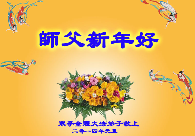 山东省高密市大法弟子一家三口、妹妹同修、姐姐同修及学法小组的同修恭祝师尊元旦快乐! 弟子只有精進实修,多救人才能回报师尊的救度之恩,师尊您辛苦了。 山东省潍坊市昌邑市大法弟子敬祝伟大的师尊新年快乐!