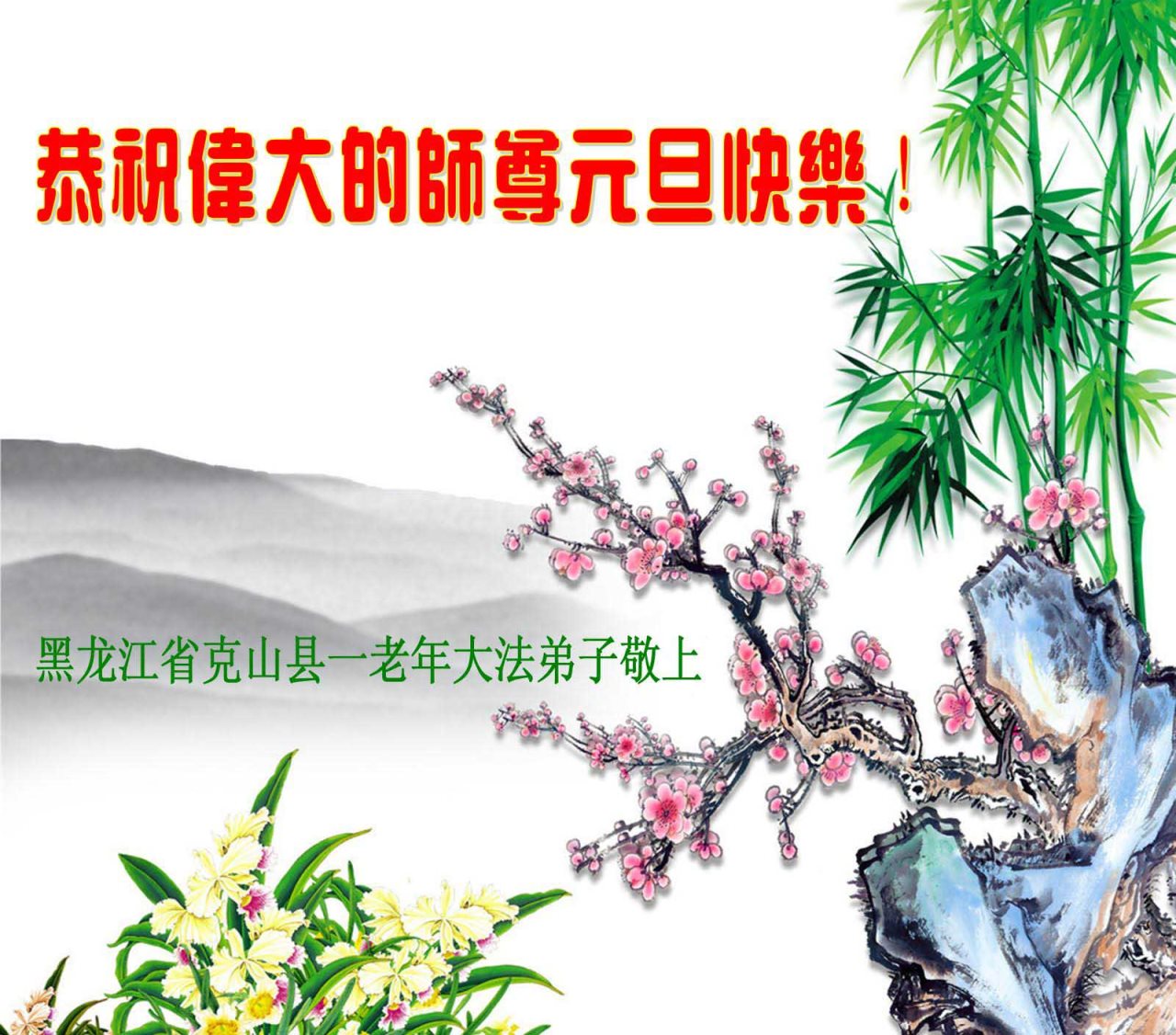 黑龙江省齐齐哈尔市克山县一老年大法弟子恭祝伟大的师尊元旦快乐!