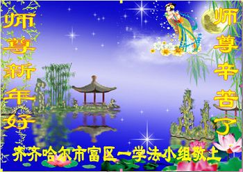 黑龙江省齐齐哈尔市富裕县大法弟子某学法小组恭祝师尊新年好!