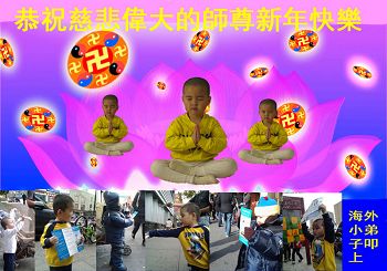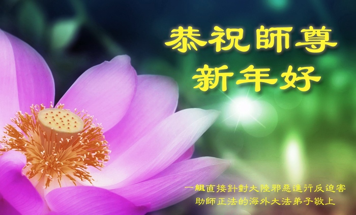 恭祝师尊元旦快乐! 希望在新的一年里,大家能多打电话,多救人,勇猛精進! 师父辛苦了! 新年快乐! 一组来自世界各地的海外大法弟子恭祝师尊新年好!