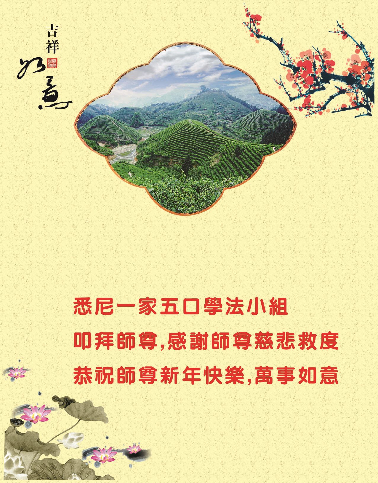 悉尼一家五口弟子叩拜师尊,感谢师尊慈悲救度,并恭祝师尊新年快乐! 澳洲悉尼一家四口大法弟子恭祝师尊新年快乐!