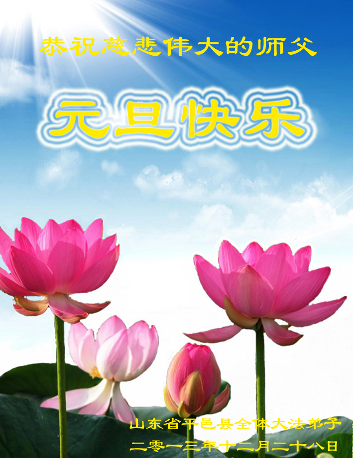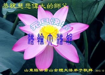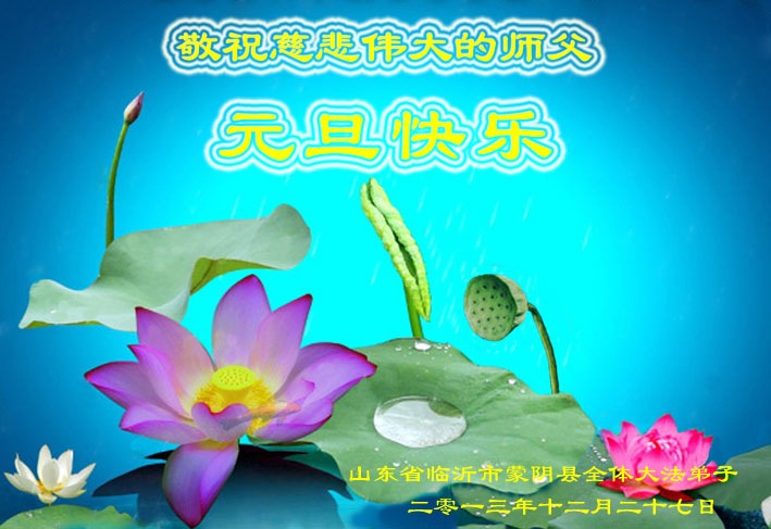 【明慧网二零一三年十二月三十一日】 山东省临沂市费县全体大法弟子恭祝慈悲伟大的师父元旦快乐!