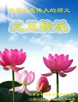 在这正法的最后时刻,我们一定要学好法,去除人心,整体配合,救度众生,不辜负师父的期望! 山东省临沂市费县大法弟子恭祝师尊元旦快乐!