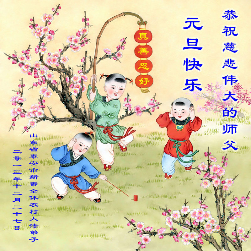 山东省泰安市新泰全体农村大法弟子恭祝慈悲伟大的师父元旦快乐!