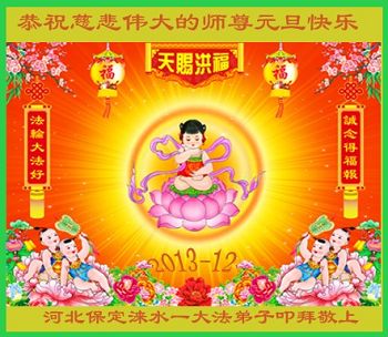 【明慧网二零一三年十二月三十一日】 河北省保定市涞水一大法弟子恭贺慈悲伟大的师尊元旦快乐!