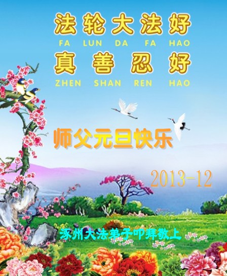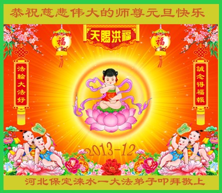 河北省保定市涞水一大法弟子叩拜敬上 二零一三年十二月二十日 河北省保定市涿州大法弟子恭贺慈悲伟大的师尊元旦快乐!