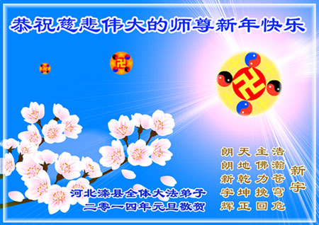 请师尊放心,我们一定做好三件事,努力精進,救度更多的人。 河北省唐山大法弟子恭祝师尊二零一四年元旦快乐!