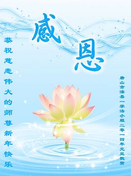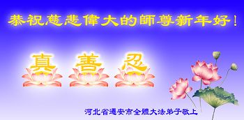 师尊新年好!在新的一年,我们学法小组一定珍惜师尊留给我们的集体学法形式,珍惜师尊正法最后的时间,学好法,向内找,做好三件事,尽最大的努力多救人。 中国大陆河北唐山路北某学法小组大法弟子恭祝师父新年好!