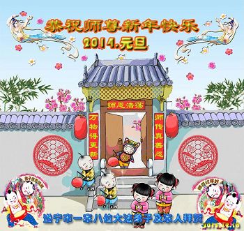 值此元旦、新年即将到来之际,遂宁大法弟子及家人向慈悲伟大的师尊致以元旦、新年的问候!师父新年好!师父您辛苦了!感恩师父一年来的慈悲救度、慈悲加持、慈悲点化!千言万语汇成一句话:恭祝师尊新年快乐!在新的一年里,我们会更加精進,努力做好师尊教诲的三件事,多学法,学好法,遇事向内找,修好自己,多多救人,完成自己的大愿。让师尊多一份欣慰,少一份操劳。再次感恩慈悲伟大的师尊!并附诗一首以示感怀!拜贺师尊! 2014年元旦暨夏历甲午新年感怀 正法推進又一年,得救众生雀跃欢。 感恩师父承大难,众生业债一身担。 感恩师尊救度苦,为救苍生出尘凡。 点化弟子破迷雾,加持弟子闯难关。 延续历史救众生,期盼弟子都圆满。 师笑我笑众生笑,万马齐奔新纪元。 千言万语道不尽,师尊洪恩万代传。 弟子唯有更精進,誓完使命随师还! 四川省达州市开江县一学法小组全体大法弟子遥祝慈悲伟大的师父元旦快乐!