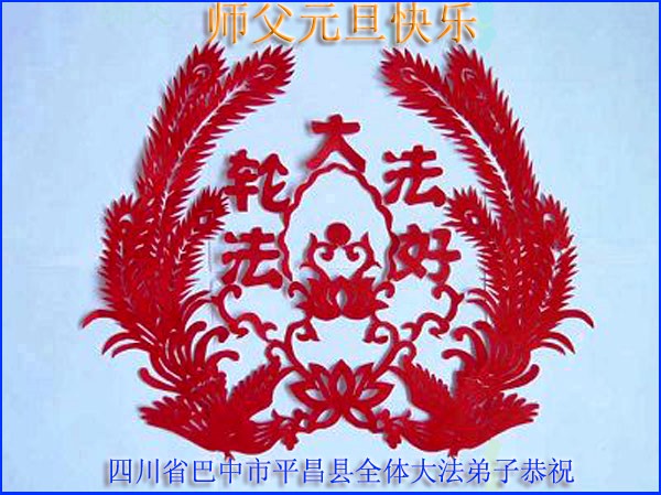 值此元旦、新年即将到来之际,遂宁市一家八位大法弟子及家人向慈悲伟大的师尊致以元旦、新年的问候!师父新年好!师父您辛苦了!感恩师父一年来的慈悲救度、慈悲加持、慈悲点化!千言万语汇成一句话:恭祝师尊新年快乐!在新的一年里,我们会更加精進,努力做好师尊教诲的三件事,多学法,学好法,遇事向内找,修好自己,多多救人,完成自己的大愿。让师尊多一份欣慰,少一份操劳。再次感恩慈悲伟大的师尊!拜贺师尊! 四川省巴中市平昌县全体大法弟子恭祝慈悲伟大的师父元旦快乐!