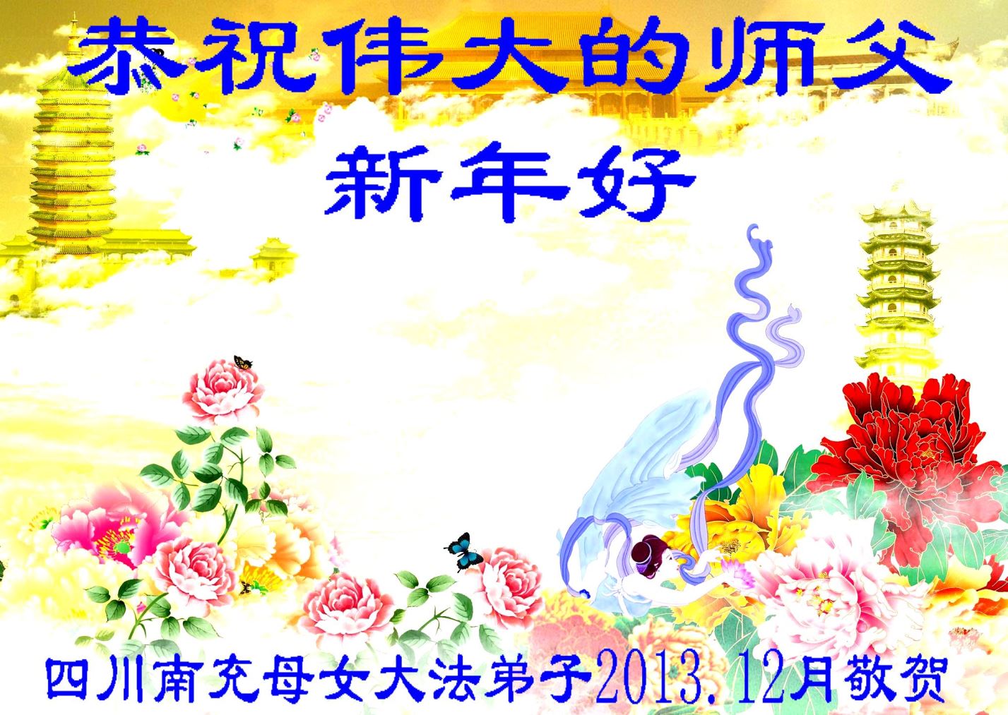【明慧网二零一三年十二月三十一日】 南充全体大法弟子恭祝慈悲伟大的师尊新年快乐!