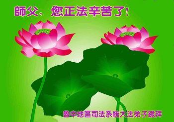 师父慈悲下凡界 层层下走来世间 法轮飞旋舞天地 普降甘霖沐浴露 弟子得法明心镜 叩拜师尊洪恩前 鲁中地区司法系统大法弟子恭祝师尊元旦快乐!