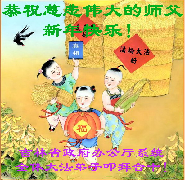 我们给师父拜年! 我们永远是大法在神州最坚强的堡垒。 吉林省政府办公厅系统全体大法弟子恭祝师尊新年快乐!
