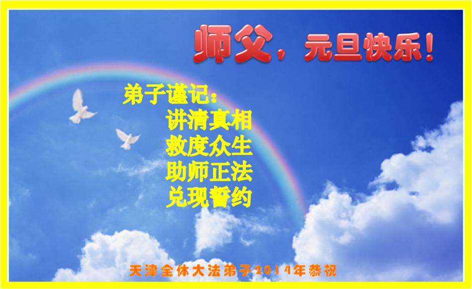 弟子谨记:讲清真相,救度众生。助师正法,兑现誓约。弟子们新的一年更精進,救度更多的有缘人! 天津市宝坻区大法弟子祝恩师新年快乐!