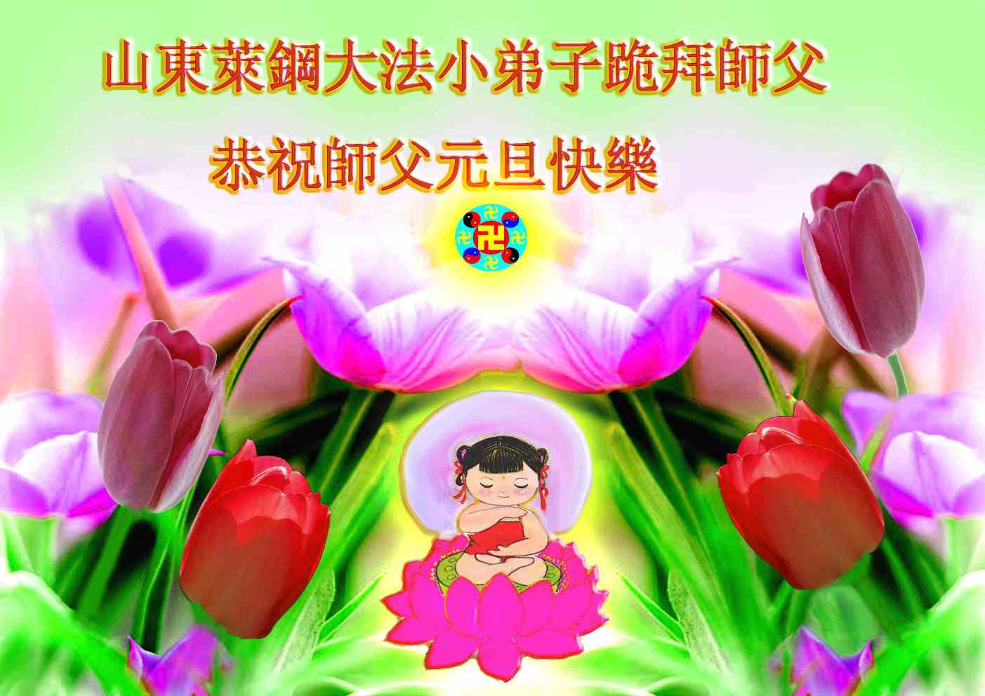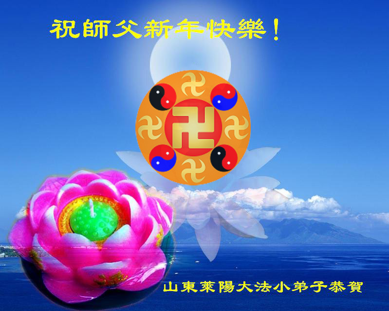 师父您好!师父辛苦了! 自从我们修炼了法轮大法,我们明白了如何做人和如何做一个更好的人,时时刻刻遵照师尊的教诲,严格用真善忍宇宙大法的法理约束自己;能够做师尊的弟子是我们生命最大的荣耀!弟子一定不负师尊所盼,做好三件事,救度更多的众生,圆满随师还。 跪拜师尊!合十! 山东莱芜大法小弟子恭祝师尊新年快乐!