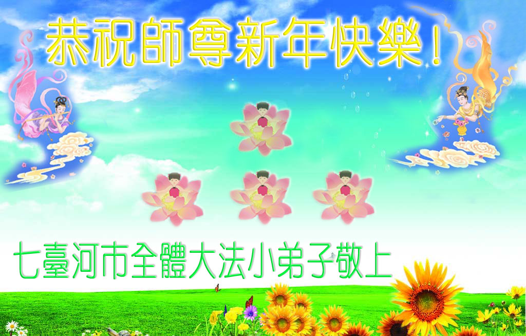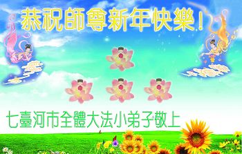 恭祝师父新年好!我是师父小弟子,师父给我智慧,我认真学习,学习好,证实大法! 连云港市大法小弟子 2013年12月25日 黑龙江省七台河全体大法小弟子恭祝师父新年快乐!