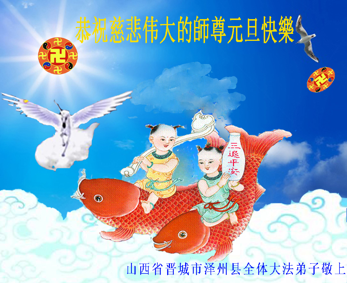 【明慧网二零一三年十二月三十一日】 山西省晋城市泽州县全体大法弟子恭祝慈悲伟大的师尊元旦快乐!