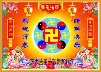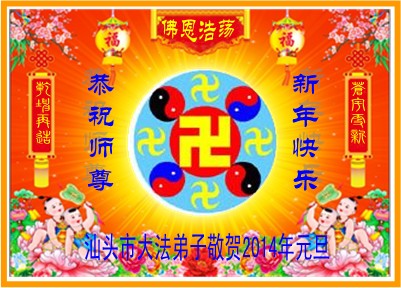 师父好!新的一年又到了,随着正法進程的推進,越来越多的世人明白了真相。但我们不能松懈,要真正助师正法,救度更多的众生! 广东梅州全体大法弟子 二零一三年十二月二十二日 广东省汕头大法弟子恭祝师父新年快乐!