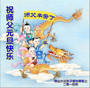 广东省佛山大法弟子婆孙俩恭祝师父元旦快乐!