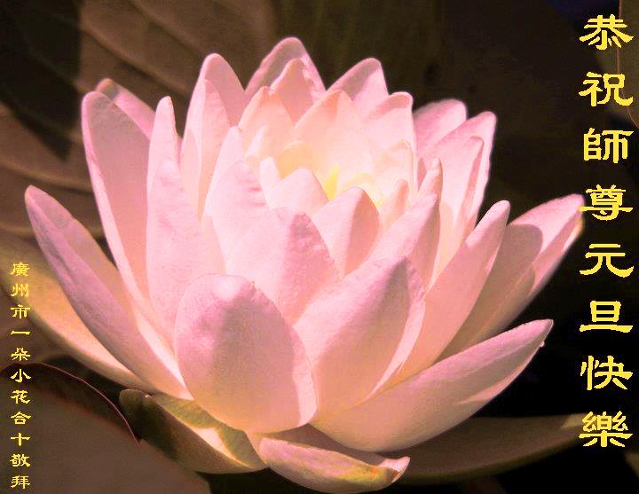 转眼又一年,在师尊的慈悲看护下,我们已逐渐找回修炼人的状态。谢谢师父! 请师父放心,弟子们一定会走好最后的路。 我们以最赤诚的心向我们最最敬爱的师父恭贺新年好,但愿师尊处笑。 辽宁省全体大法弟子 广东省广州全体大法弟子恭祝慈悲伟大的师尊元旦快乐!