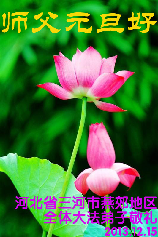 【明慧网二零一三年十二月三十一日】 河北省廊坊市三河市燕郊地区全体大法弟子恭祝师父元旦好!