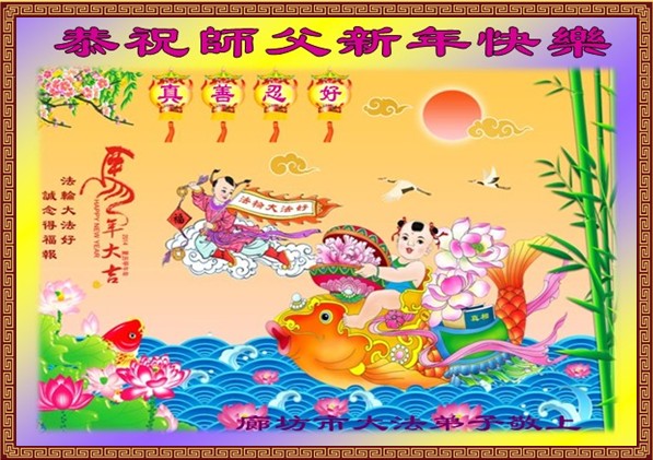 师父您好!您辛苦了!您为我们操尽了心!在新的一年里,弟子要多学法,去执着,做个合格的大法弟子。弟子叩拜师尊! 河北省廊坊市三河市燕郊大法弟子恭祝师尊新年快乐!