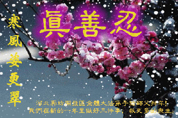 在这元旦之际,向我们日夜思念的慈悲伟大的师尊问候,恭祝师尊元旦快乐! 弟子敬献诗词二首: 如梦令(宋词 外一首) 无悔 大梦已醒明慧,兑现誓约无愧。大戏将闭幕,戏中轮回无悔。尊贵,尊贵,修炼如初荣归。 互助 法徒遇难互助,整体升华同步。展慈悲风采,且看寒梅铁骨。得度,得度,仰仗师尊呵护。 河北省廊坊法轮功学员恭祝慈悲伟大的师尊新年快乐!