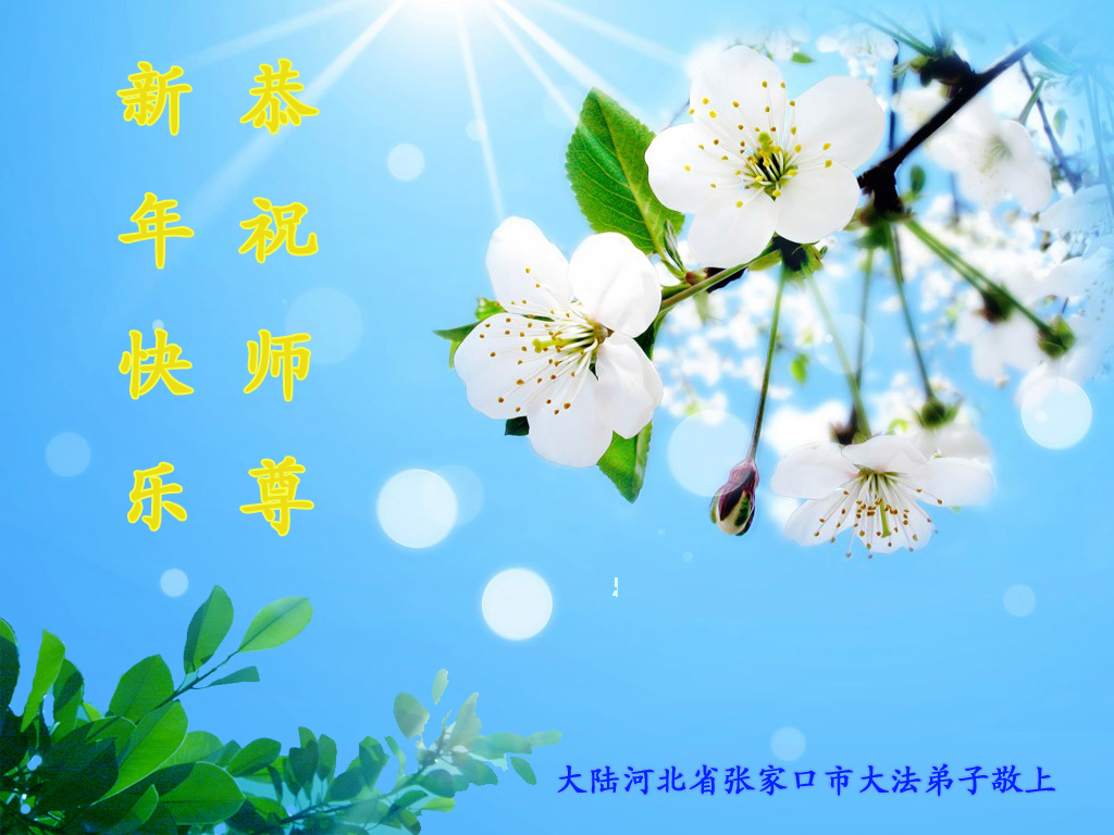 师父,新年好! 师父,您辛苦了!由于我自身的因缘关系,我更多的感受到了师父救度我的慈悲;人类任何的语言都表达不尽我对师父的感恩。唯有恒心再精進,才能不负师恩! 恭祝师父新年快乐! 河北省张家口高新区一学法小组的大法弟子恭祝师父新年快乐!