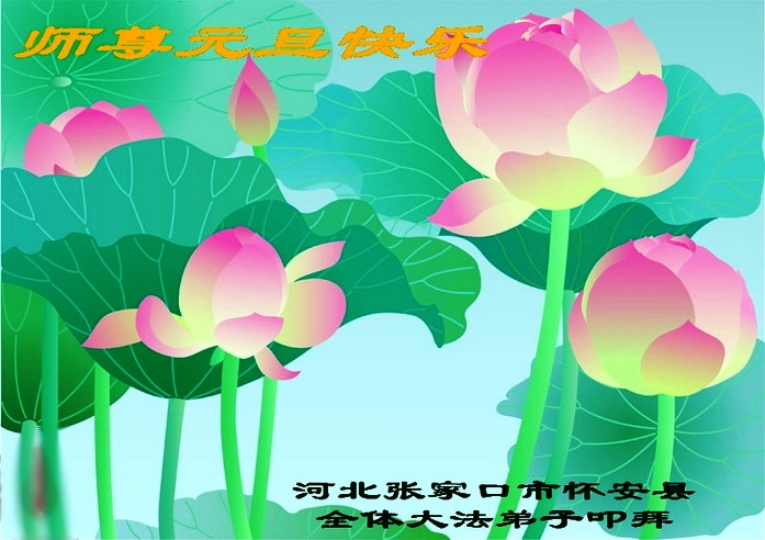 在新的一年来临之际,河北张家口市怀安县全体大法弟子祝慈悲伟大的师尊元旦快乐,感谢师父的慈悲苦度! 河北省张家口市桥西区大法弟子恭祝师父新年好!