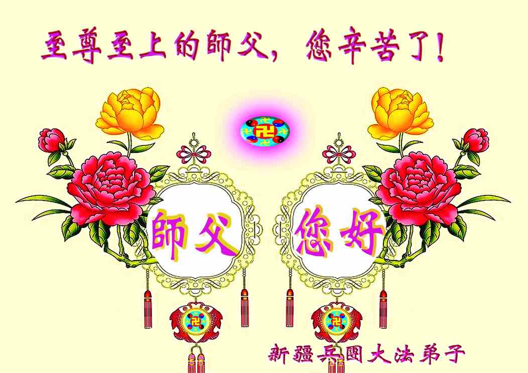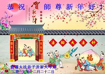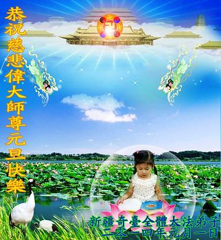 值此新年来临之际,回忆这些年来的修炼历程,弟子充满了对师尊的无限感恩之情。虽然我曾经走过弯路,但师尊没有嫌弃我,时时在身边呵护着我。只有听师尊的话,多学法、学好法,做好三件事,多救人,圆满随师还! 新疆全体大法弟子恭祝慈悲伟大的师尊新年好!
