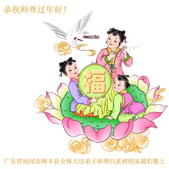 广东省汕尾市海丰县全体大法弟子和明白真相的家属们恭祝师尊2014年新年好!