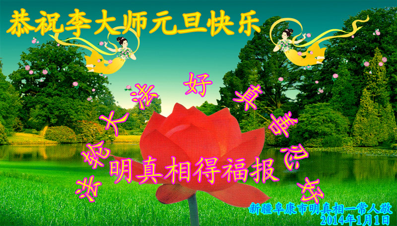 【明慧网二零一三年十二月三十一日】 新疆维吾尔自治区昌吉州阜康市一明真相常人恭祝李大师元旦快乐!