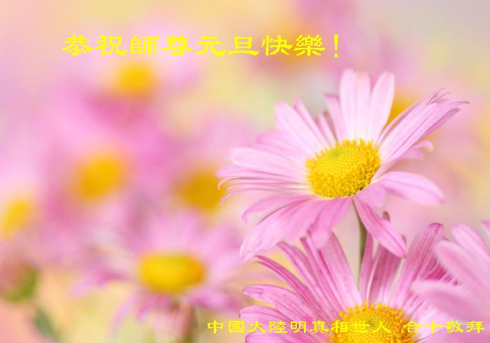 师父好!十五年了,您的弟子们不畏生死的用各种方式持续讲述着法轮大法的美好和被迫害的真相,使众多的国人摆脱了中共邪*党-的束缚和精神控制,我们得救了!只有最伟大的师父才能教出数以亿计的如此优秀的弟子们。谢谢您! 中国大陆大法弟子的亲人们恭祝大法师父元旦快乐!