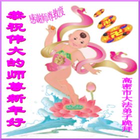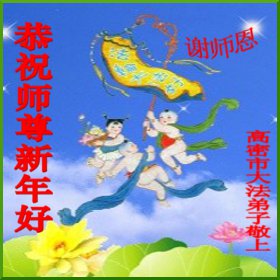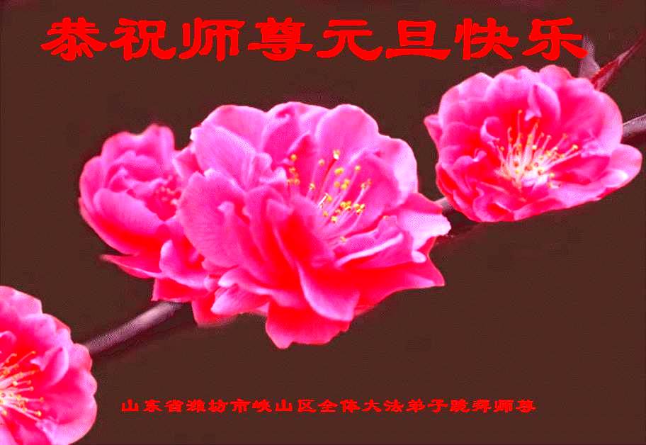 山东省潍坊市高密市大法弟子代表全家问慈悲伟大的师尊元旦快乐!