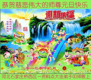 河北石家庄桥东区一学法小组大法弟子叩拜敬上 二零一三年十二月二十日 河北省石家庄市辛集市全体大法弟子恭祝慈悲伟大的师父元旦快乐!
