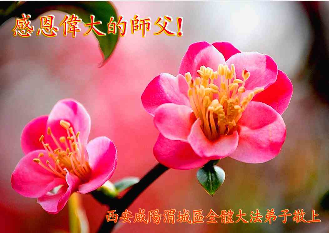 我们想念伟大慈悲的师尊!请师尊放心,我们一定按师尊要求,努力认真做好三件事,救度更多有缘人,随师回家。 陕西省西安市全体大法弟子恭祝师尊元旦快乐!