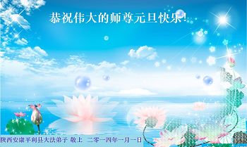 在新的一年里,我们一定真正的实修,去掉各种人心,事事向内找,多学法,多救人,整体配合、整体提高,做好三件事,不辜负师尊的慈悲救度! 一陕西省西安大法弟子祝师父元旦快乐!