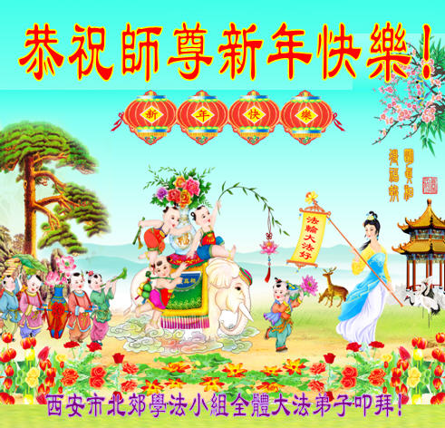 陕西省西安北郊学法小组全体大法弟子恭祝师尊新年快乐!