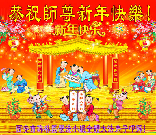 陕西省西安市碑林区学法小组全体大法弟子恭祝师尊新年快乐!