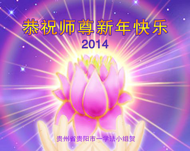 师尊,新年好! 在2014年新年来临之际,弟子恭贺师尊新年好!弟子深知,世人、众生能迎来新的一年是师尊的巨大付出换来的,这个时间是师尊给弟子救度众生的。 弟子一定用心的修炼,向内找,努力修去执着心,让师尊少操心。多救人,圆满随师回家。 贵阳市一大法弟子敬上!合十 二零一三年十二月二十五日 贵州省安顺全体大法弟子恭祝师父新年快乐!