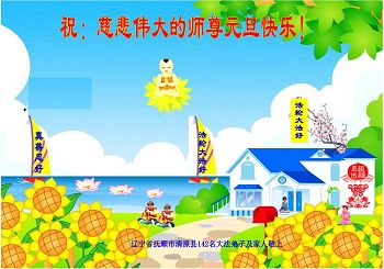 尊敬的师父新年好! 弟子是08年得法,在这5年里弟子走的磕磕绊绊的。弟子在今后的修炼道路上要勇猛精進,要做好三件事,跟师父回家。谢谢师父! 辽宁省鞍山一老年大法弟子祝师父新年快乐!