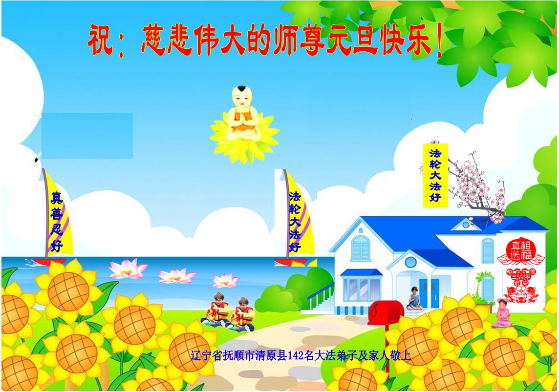 师父辛苦了!谢谢师父的巨大承受和付出,我们会遵照师父的教诲配合好、多救人,让师父少操一份心。 叩拜师父 辽宁省抚顺市清源县全体大法弟子及家人恭祝师父新年快乐!